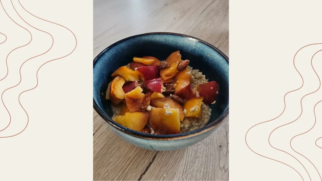 Porridge à la pêche et amandes grillées au miel